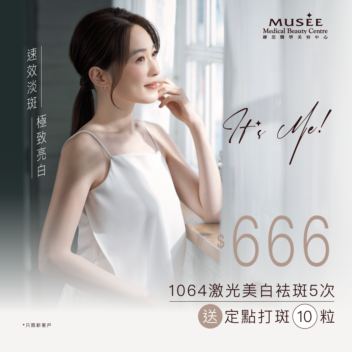❇️客人購買前請細閱以下內容❇️ 包括:【1064 激光美白袪斑療程】5次 及 定點打斑10粒 採用 1064nm 波長,以短脈衝打進皮膚底下的網狀真皮層,促進膠原蛋白增生,改善毛孔粗大及過份出油等肌膚問題。有效改善深層色斑,均勻膚色,達到緊膚、美顏及拉提效果。療程後只出現微紅,不會結焦,可即時化妝及上班。 了解更多: https://www.museemedical.com.hk/zh-hant/promotion/details/17/ ⭐送貨方式必須選擇本地取貨(Local Pickup)⭐ 完成購買後將有專人聯絡預約療程及免費諮詢 分店地區:銅鑼灣 / 中環 / 尖沙咀 【條款及細則】 ‧可做5次療程 ‧不可兌換現金及與其他優惠/折扣同時使用 ‧每人只限購買1次 ‧療程只適用於Musee Medical Beauty Centre 18歲以上新客戶 ‧請注意以下人士不能接受療程 - 皮膚癌 - 皮膚有任何異常或極度乾燥 - 長期病患或服用長期藥物 - 懷孕中 - 對光敏感 - 使用心臟起搏器 ‧療程不設退換 ‧使用療程前必須完成免費諮詢,如諮詢過程中發現客人不適合進行療程/重覆購買,費用可換取同等價值之Musee Cosme產品 ‧點擊「提交」即表示你同意本店的《服務條款》、《私隱條例》、《條款及細則》 ‧如有任何爭議,Musee Medical Beauty Centre/Musee Cosme保留最終決定權